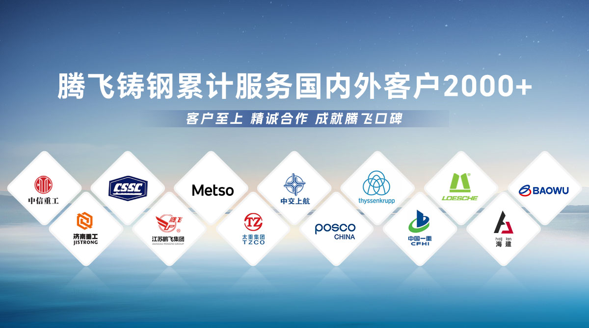 騰飛鑄鋼成立于2006年,位于全國鑄造基地河南省新鄉(xiāng)市,擁有員工300余人,是一家從事150噸以下碳鋼、低合金鋼、不銹鋼鑄鋼件研發(fā)、制造、服務(wù)為一體的國家高新技術(shù)企業(yè)。  公司通過了ISO9001國際質(zhì)量管理體系認(rèn)證,擁有2項發(fā)明專 利,2項河南省科技成果、25項實用新型技術(shù),通過了“環(huán)??冃гu級B級企業(yè)”驗收,先后榮獲“河南省鑄造行業(yè)綠色發(fā)展企業(yè)”、 “河南省科技型中小企業(yè)”、“河南省專精特新中小企業(yè)”等榮譽稱號?! 」緭碛?臺25噸電爐,4臺大型天燃?xì)鉄崽幚頎t、10米回旋自動拋丸機一臺, φ8m數(shù)控立車、φ10m數(shù)控滾齒機等各類高精裝備100余臺套,年產(chǎn)能3萬余噸,能為客戶提供從產(chǎn)品設(shè)計、木模加工、大型鑄造、大型加工一站式服務(wù),產(chǎn)品廣泛應(yīng)用于建材、冶金、鍛壓、冶金、水工、路橋、化工等多個重型行業(yè)?! ¢L期服務(wù)于中信重工、中船重工、美卓、上海中交、萊歇、寶武、濟南重工等全球知名企業(yè),在行業(yè)內(nèi)擁有較高的市場知名度和美譽度。